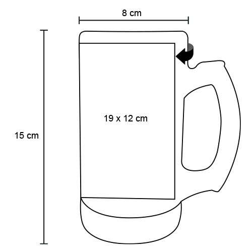 Tarro de vidrio sublimable, tipo cervecero. Para obtener mejores resultado al llevar a cabo la sublimación se recomienda hacerlo a una temperatura de entre 350 y 360 grados centígrados durante 30 segundos.