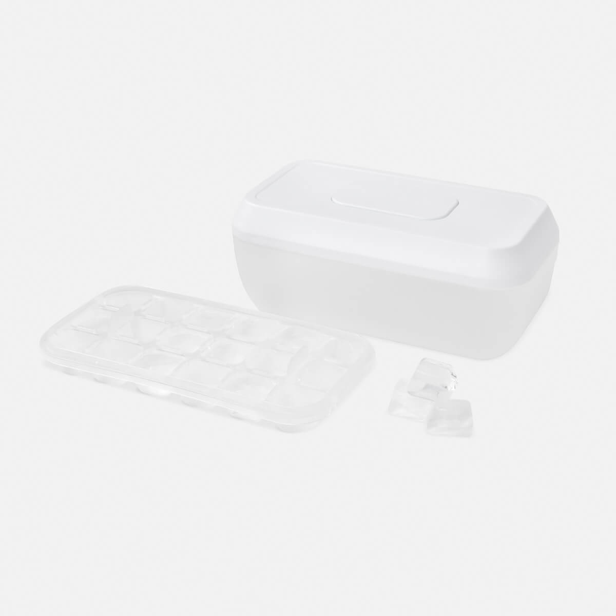Molde para hielos con almacenamiento integrado. Crea hasta 18 cubitos y desmóldalos fácilmente con el sistema push de la tapa. Gracias a su contenedor integrado, puedes almacenar el hielo listo para usar sin ocupar espacio extra.