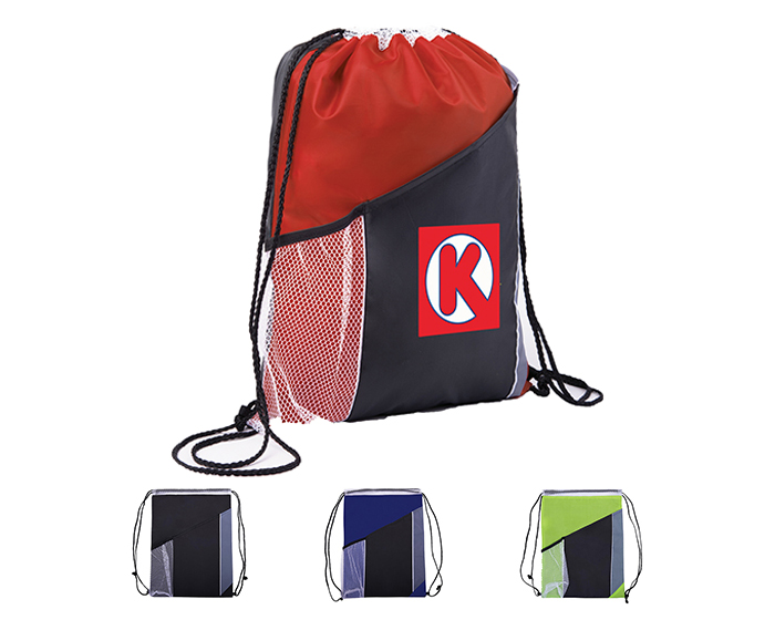 Morral con jareta, compartimento exterior y bolsa lateral de malla.