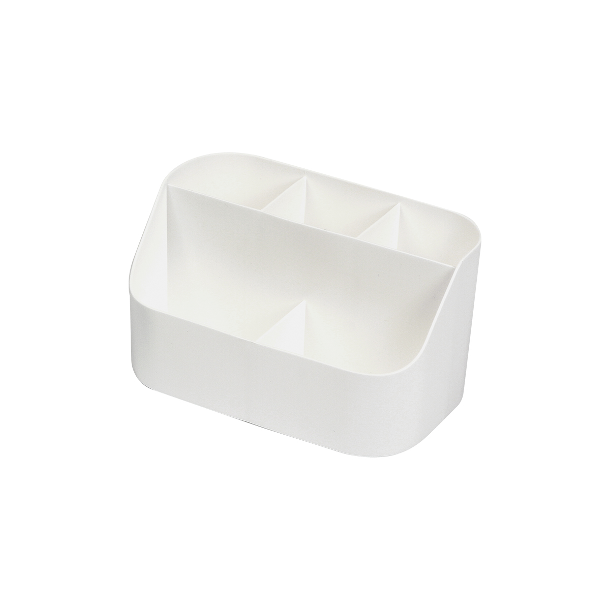 Organizador de escritorio fabricado en plástico, cuenta con cinco compartimentos para bolígrafos, plumas, u otros objetos de papelería.