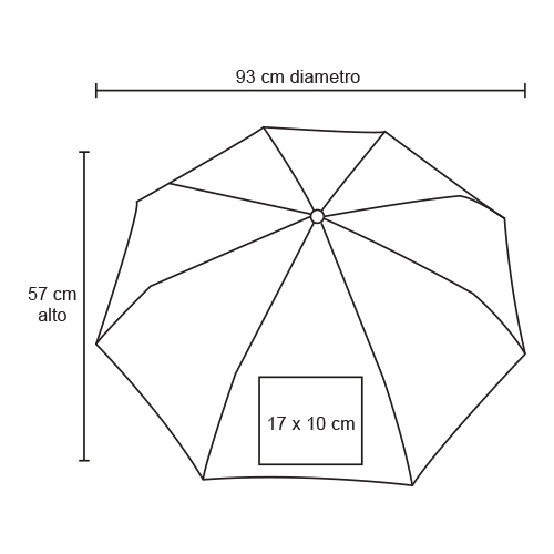 Paraguas de bolsillo con sistema de apertura y cierre automático con mango de plástico. Incluye funda.