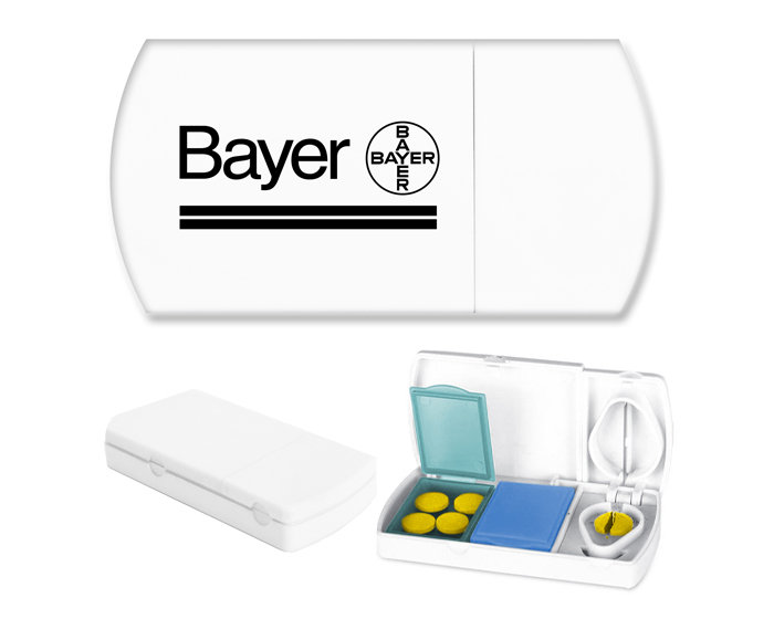 Pastillero cortapastillas. Incluye: dos estuches para separar medicamentos.