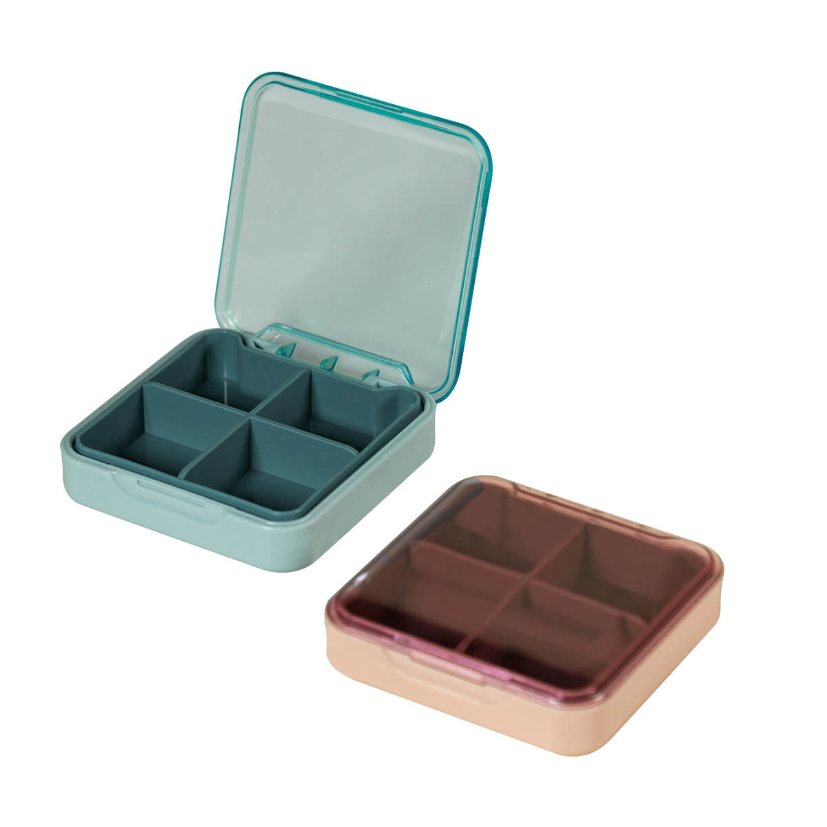 Pastillero compacto. Cuenta con un organizador removible de 4 compartimentos que permite separar tus medicamentos y gestionarlos de manera sencilla.