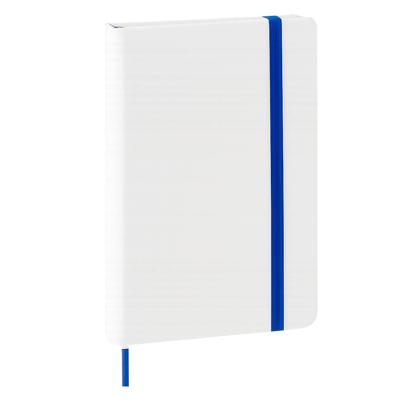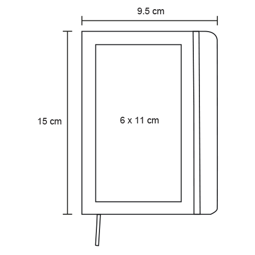 Mini libreta de poliuretano con 80 hojas de raya y banda elástica para sujetar cubierta.