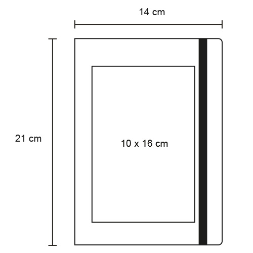 Libreta de picon paper con 82 hojas rayadas, separador y banda elástica. (Picon Paper es un material ecológico elaborado a partir de periódico reciclado, caracterizado por su textura ligeramente rugosa, tono grisáceo natural y resistencia moderada, ideal para fabricar libretas).