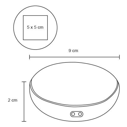 Batería portátil de plástico con botón de encendido y apagado, pantalla LED, puerto USB y entrada micro USB.