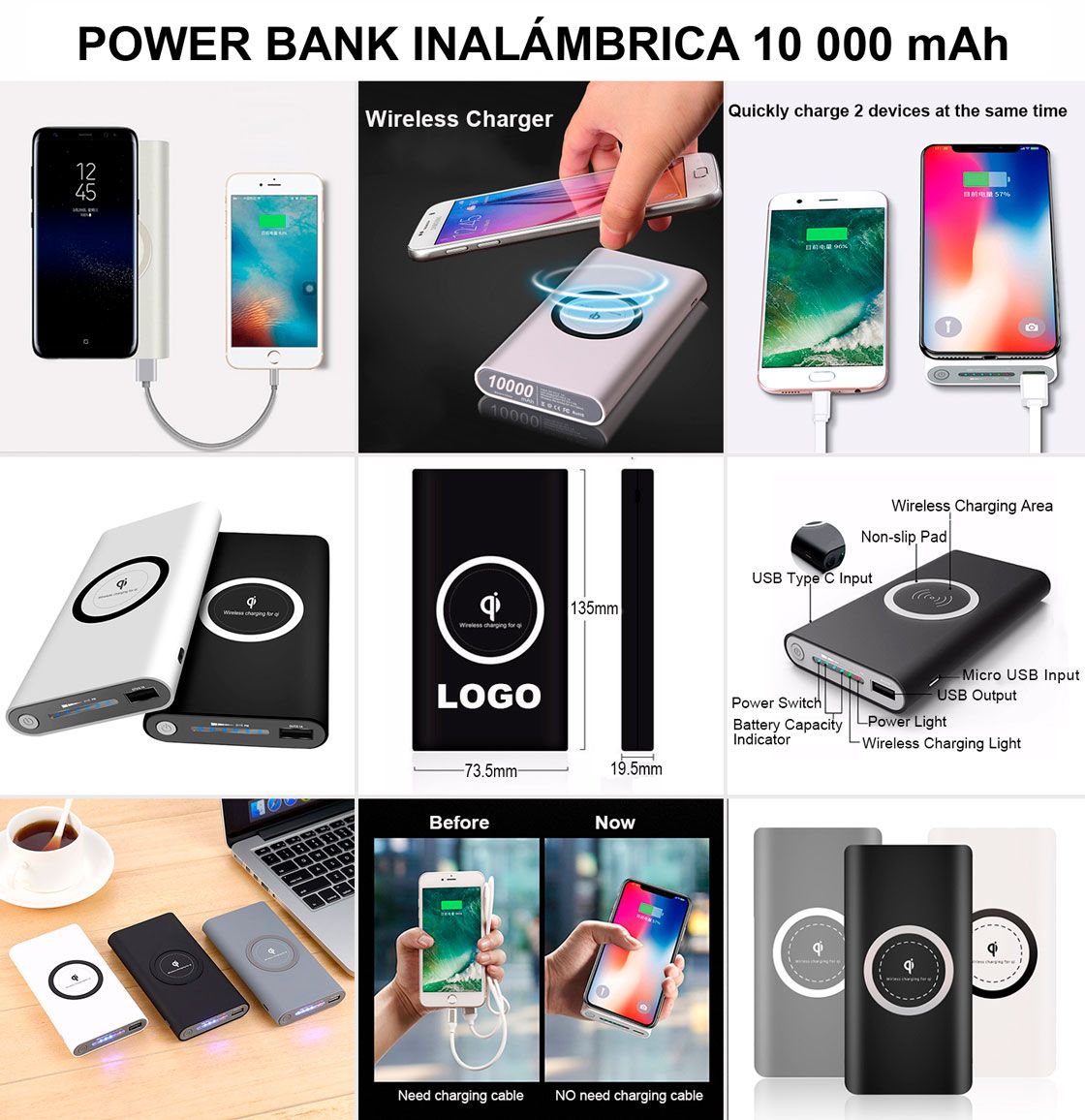 Power Bank para carga Inalámbrica y carga Convencional por cable.