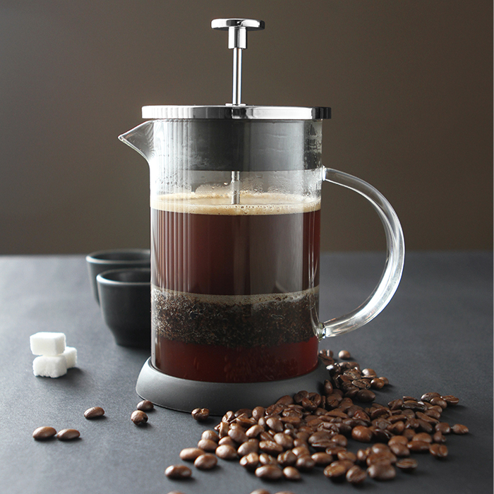 Prensa francesa con detalles en plástico y acero inoxidable. Su jarra de vidrio resistente al calor, combinada con detalles de plástico y acero inoxidable, garantiza un rendimiento duradero y resultados deliciosos. Capacidad de 800 ml, podrá preparar varias tazas de bebida a la vez. Es una opción excepcional para los amantes del café y el té que valoran la calidad y la estética.