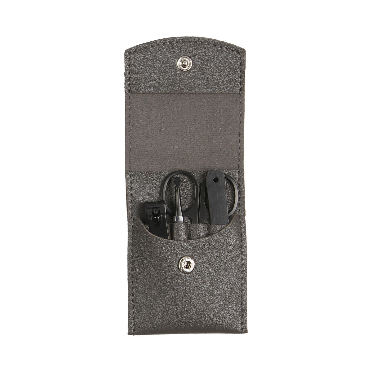 Set de manicure con 4 piezas de acero y estuche de curpiel que le agrega un toque de estilo. Incluye: corta uñas, pinzas, tijeras y lima. Gracias a su tamaño compacto es fácil y cómodo de transportar.