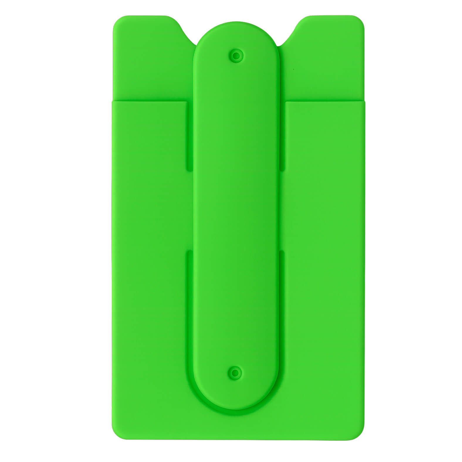 Porta tarjetero de silicón con clip retráctil que sirve como soporte para el celular y enrollar auriculares.