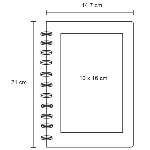 Libreta de poliuretano reutilizable con espiral metálico y 50 hojas rayadas. Incluye bolígrafo y paño de limpieza, permitiendo eliminar el contenido fácilmente y aprovechar al máximo cada hoja.