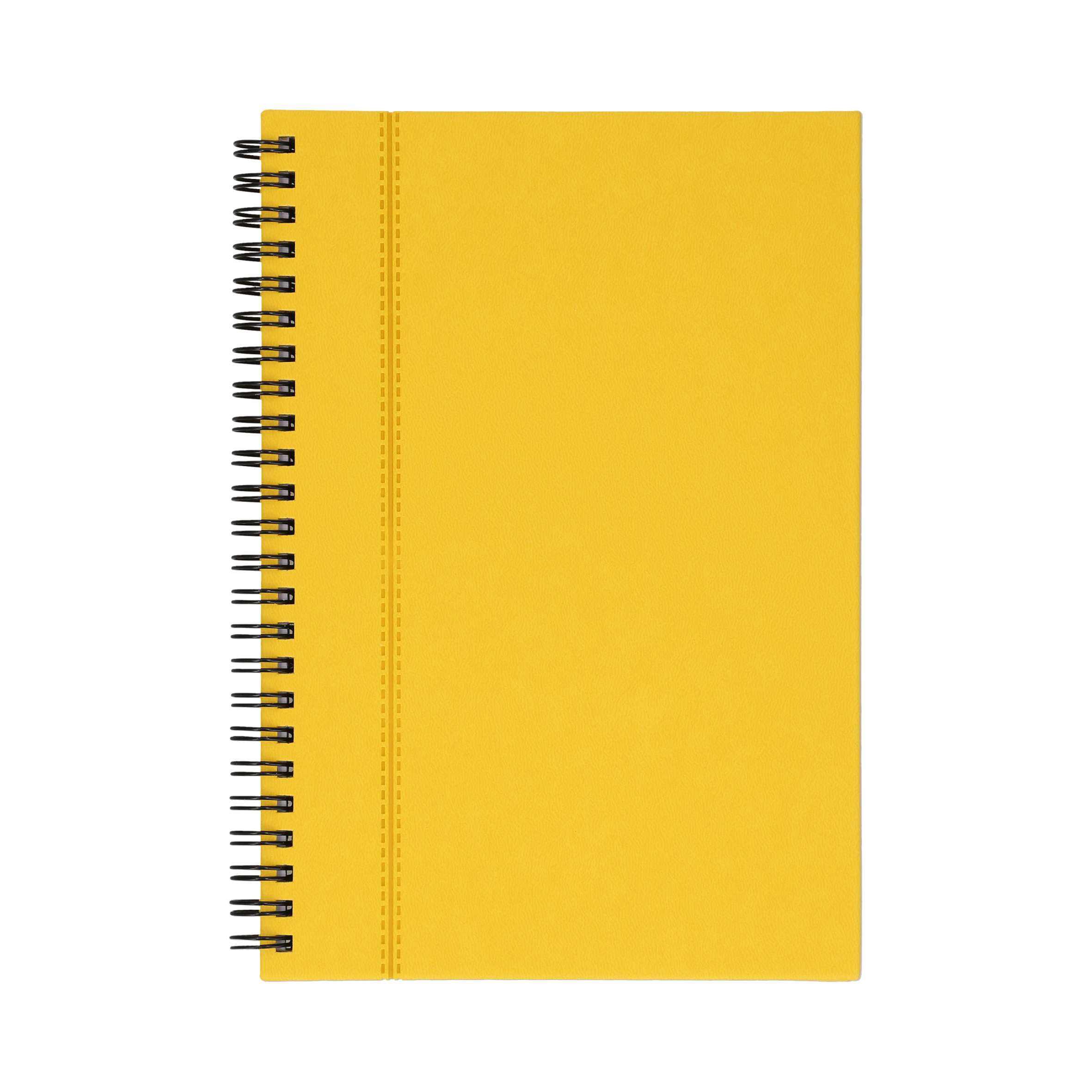 Libreta de poliuretano con espiral metálico y 70 hojas rayadas.