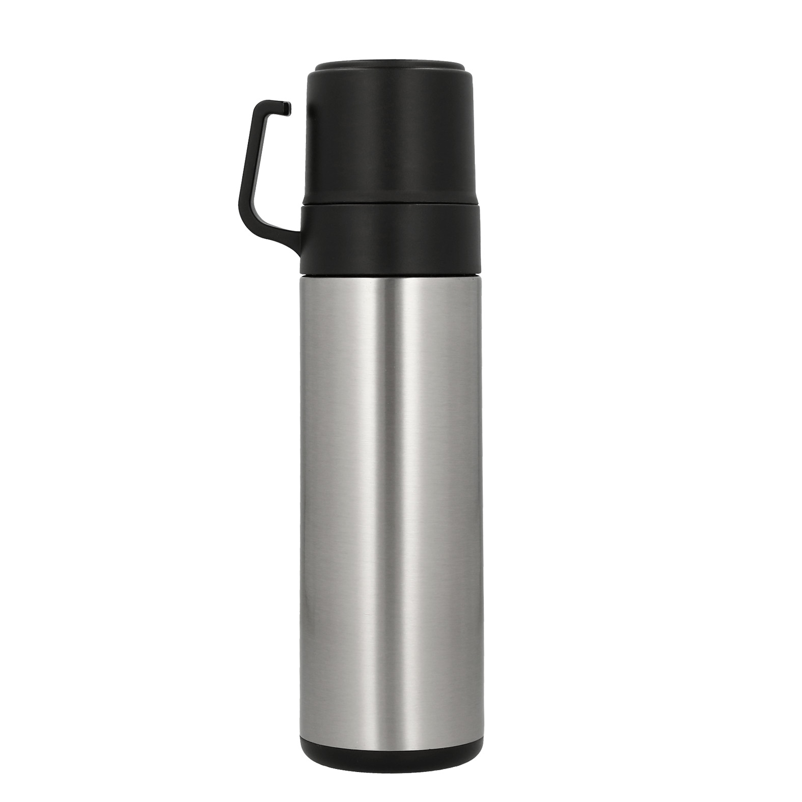 Termo de acero inoxidable de doble pared insulado al vacío, válvula de seguridad y tapa que funciona como taza. Incluye una segunda taza.