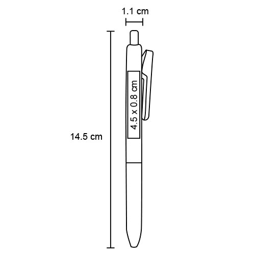 Bolígrafo con clip de plástico, mecanismo de click y tinta de gel.