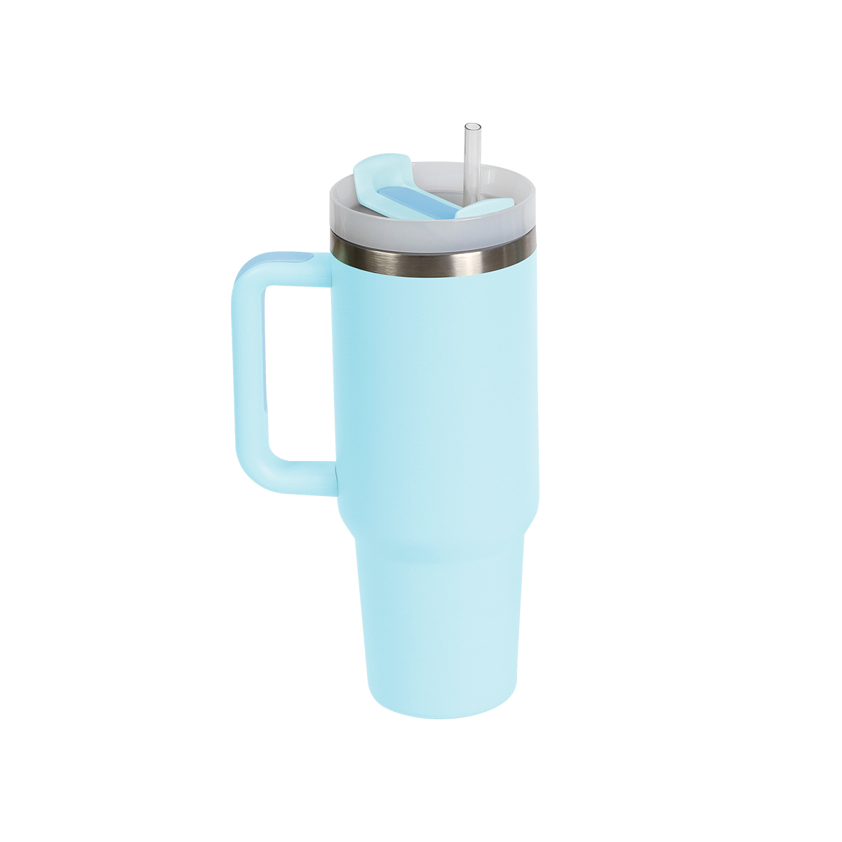 Termo Jumbo fabricado en acero inoxidable de doble pared con asa y tapa deslizable con opción para usar con o sin popote. Cubierta giratoria con tres posiciones: apertura especial para popote que mantiene el popote reutilizable en su lugar, apertura de bebida para tomar directamente del termo y cubierta completa para cerrar el termo. Capacidad de 1,200 ml (40 oz). Incluye caja individual.