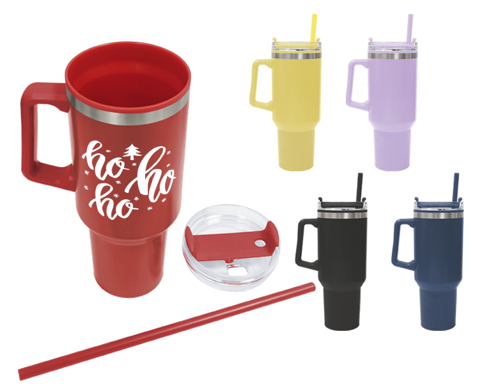 Termo con exterior de acero inoxidable con interior de plástico y asa de plástico. Incluye tapa transparente con cierre a presión y seguro giratorio en color del termo, con ranura para popote de color. CAP. 1,200 ml. Presentación: Caja en color blanco.