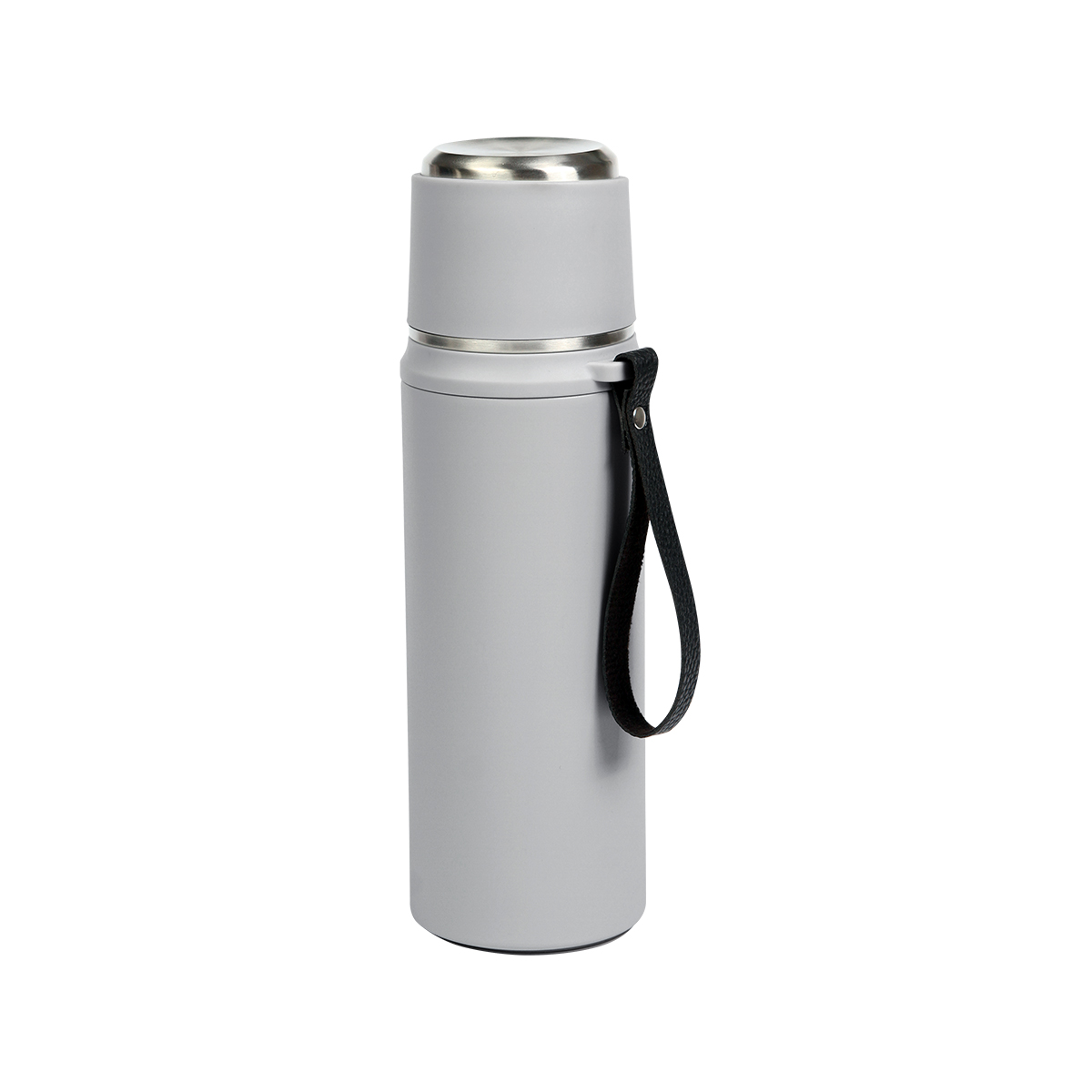 Termo de acero inoxidable doble pared con tapa tipo rosca. La tapa es una taza para poder tomar tus bebidas, también incluye un cordón para poder sujetarlo. Fabricado en materiales de grado alimenticio, mantiene bebidas frías o calientes por un largo tiempo. No usar en microondas. Capacidad 800 ml. Incluye caja de cartón individual.
