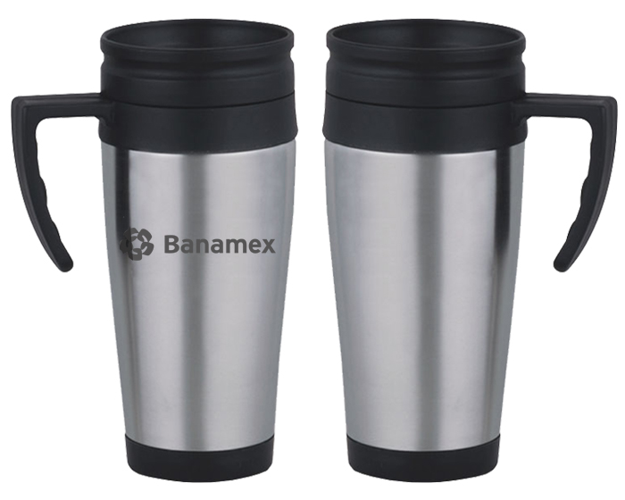 Termo para auto con interior de plástico y tapa de rosca. CAP. 400 ml. Presentación: caja en color blanco.