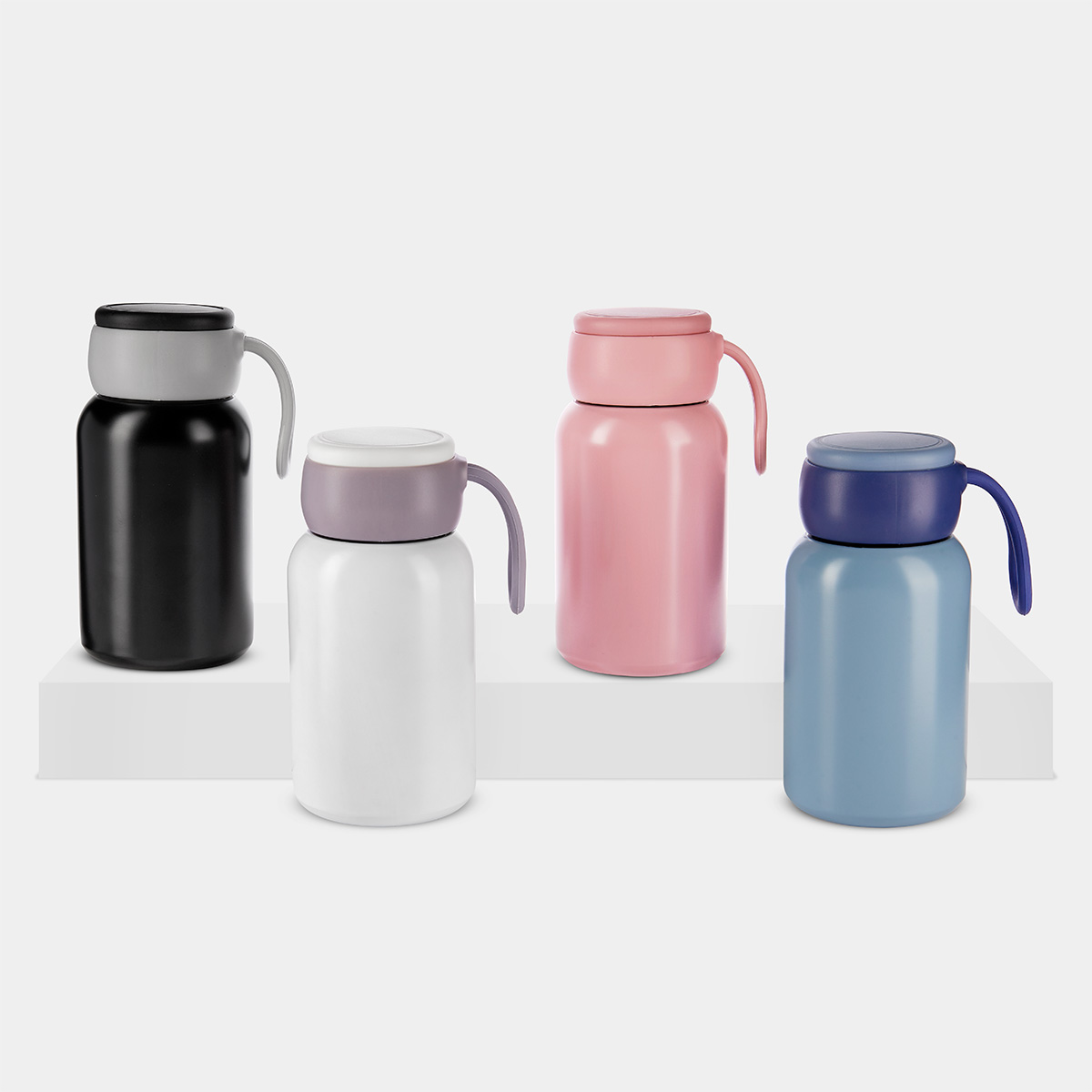 Doble pared. Cerrado al vacío. Pared interna y externa de acero inoxidable. Tapa de plástico bitono con sistema de rosca y asa de silicón. Mantiene temperatura caliente 6 hrs y temperatura fría 8 hrs aproximadamente. Incluye caja individual.