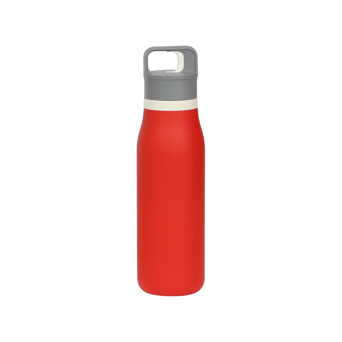 Termo de doble pared fabricado en acero inoxidable. Capacidad de 500 ml. Incluye tapa de acción de botón press-on la cual sirve también como asa para mejor manipulación.