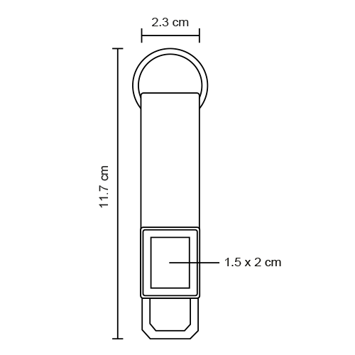 Llavero metálico con gancho de sujeción, correa de curpiel y rectángulo con acabado espejo.
