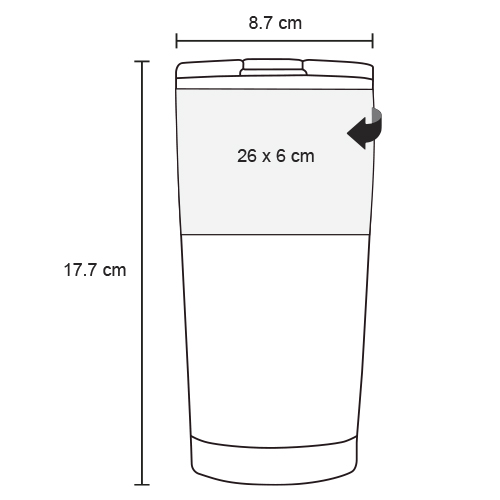 Termo sublimable con doble pared de acero inoxidable insulado al vacío. Incluye tapa de cierre a presión transparente.