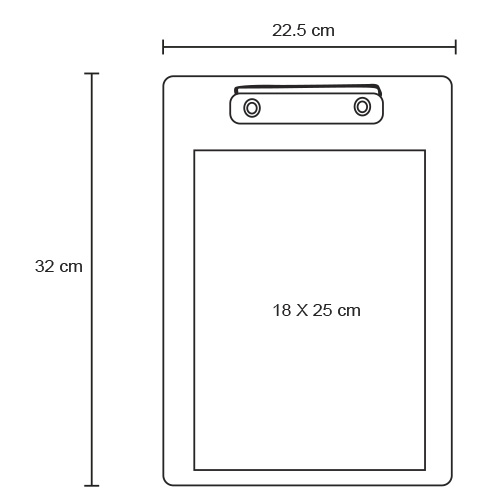 Tabla sujetadocumentos de plástico para escribir con clip de metal para papel.