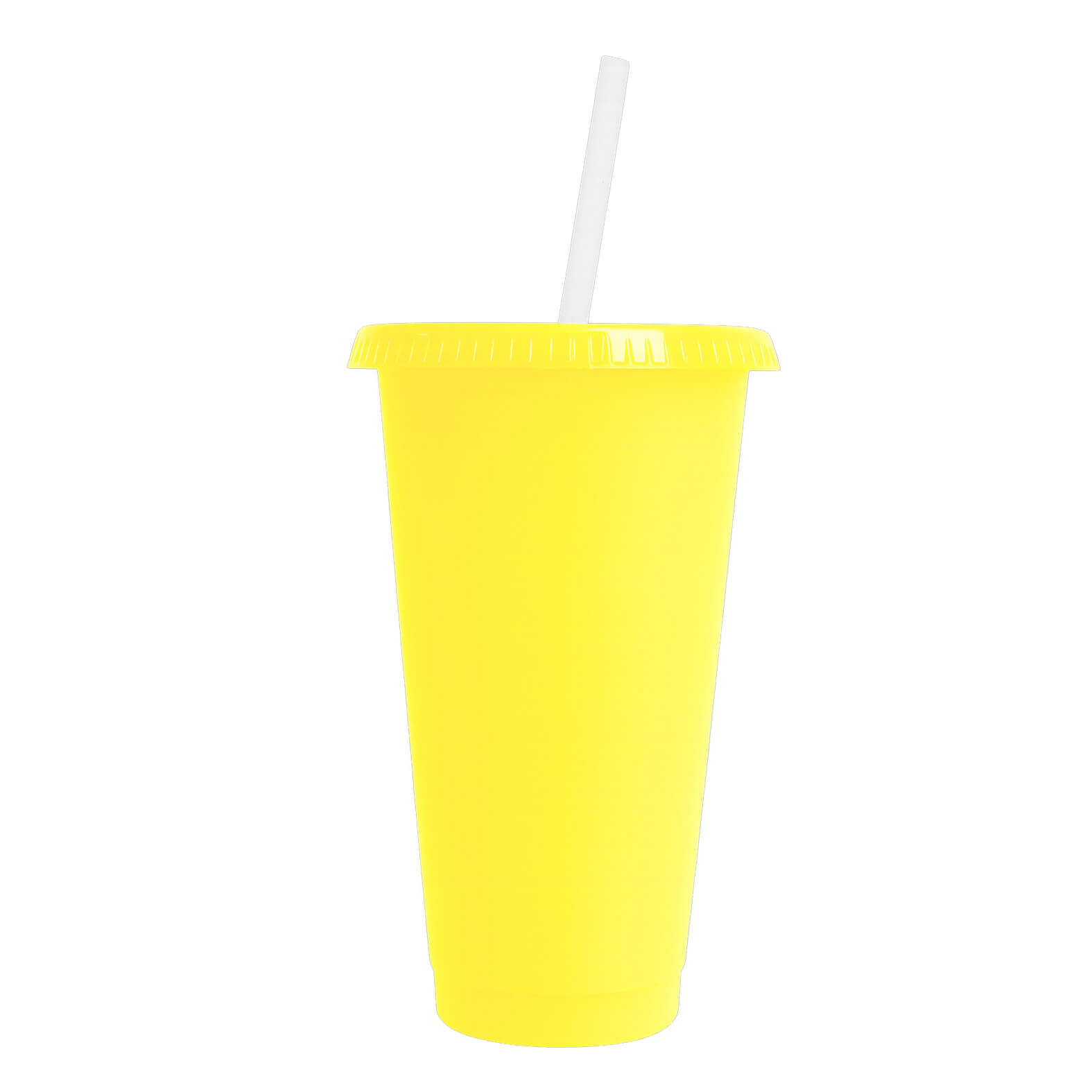 Vaso de plástico con colores pastel y tapa. (Incluye popote).