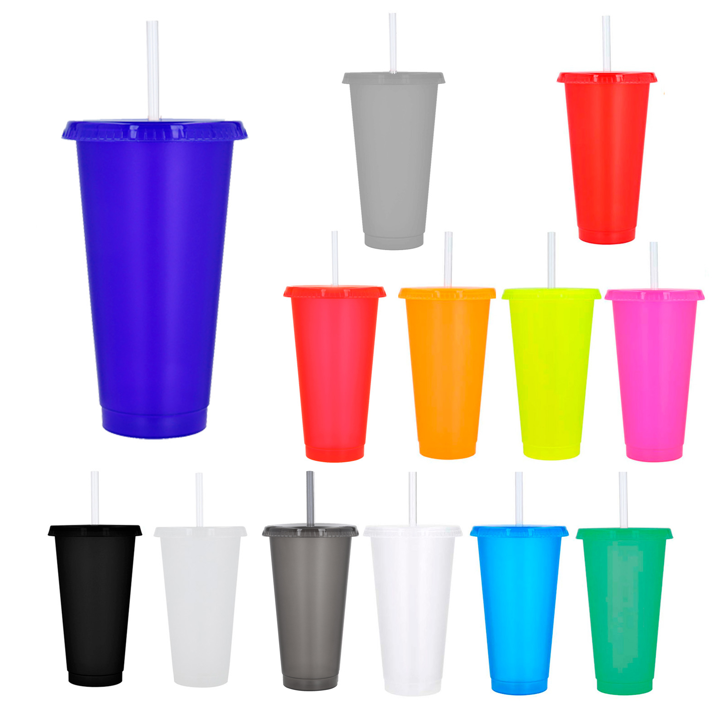 Vaso de plástico transparente con tapa traslúcida. (Incluye popote).