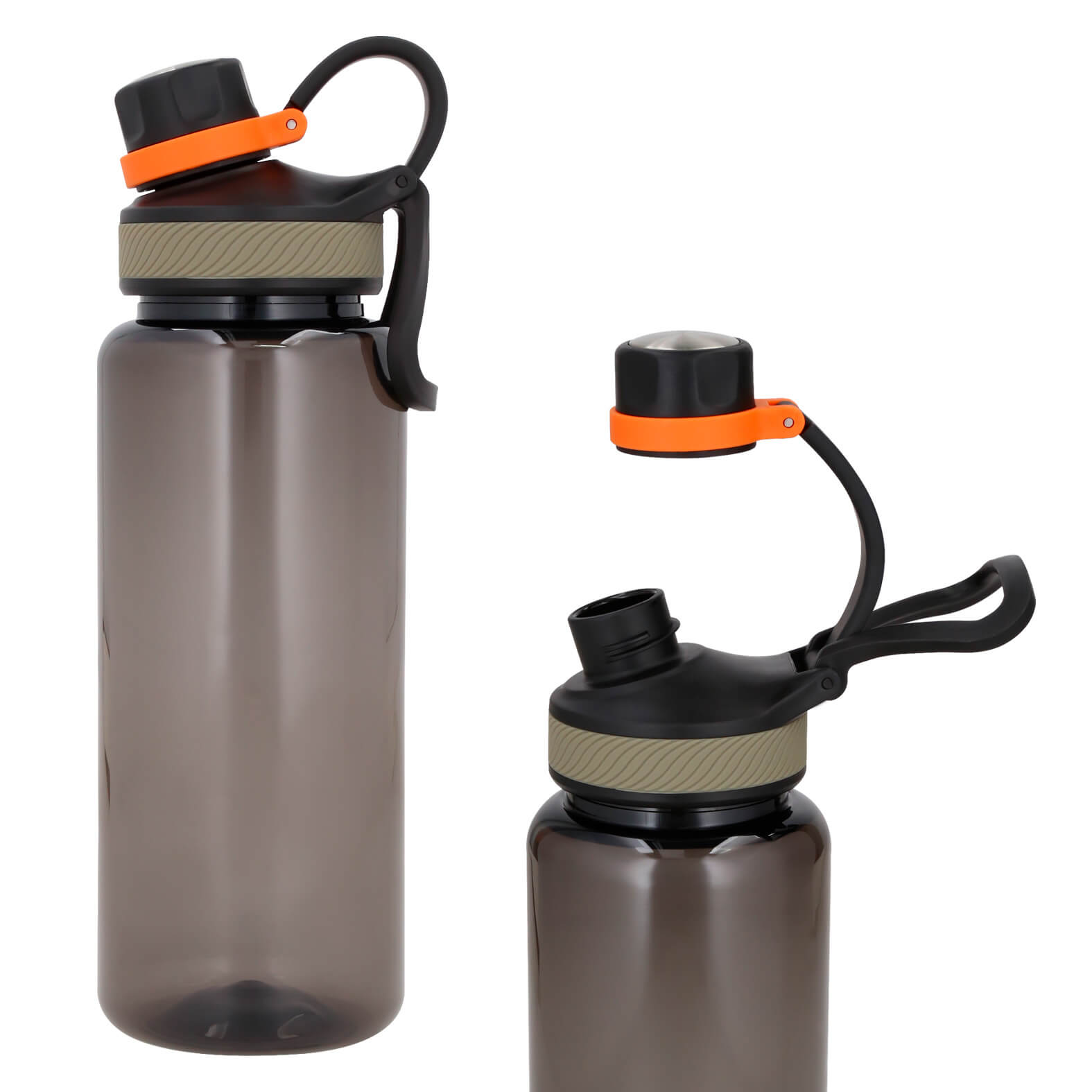Cilindro de plástico con tapa y boquilla enroscable con asa. Medidas del empaque de la base: 86 piezas por caja. medidas (51 x 41 x 40 cm)