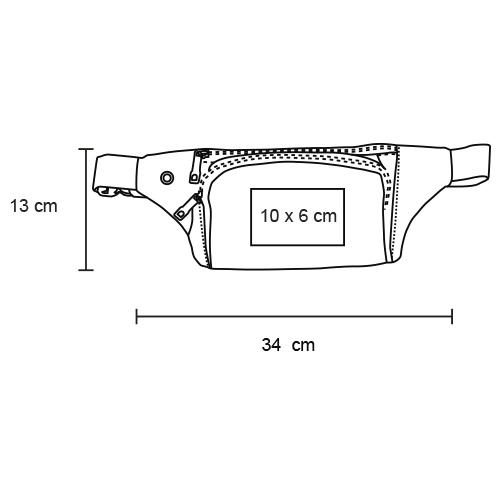 Cangurera con 3 compartimentos, 2 en la parte frontal, 1 en la parte trasera, cinta ajustable a la cintura y broche de seguridad a presión.