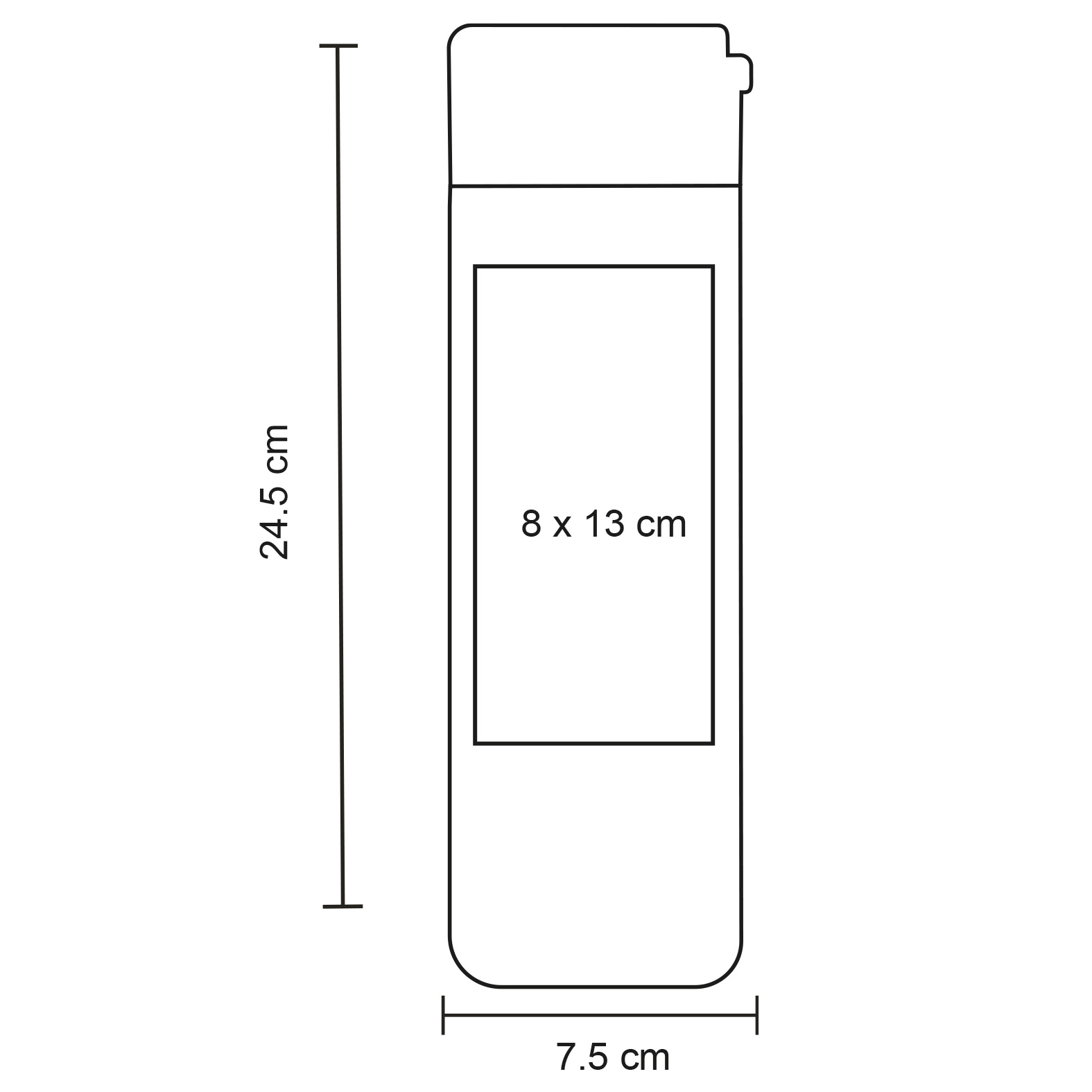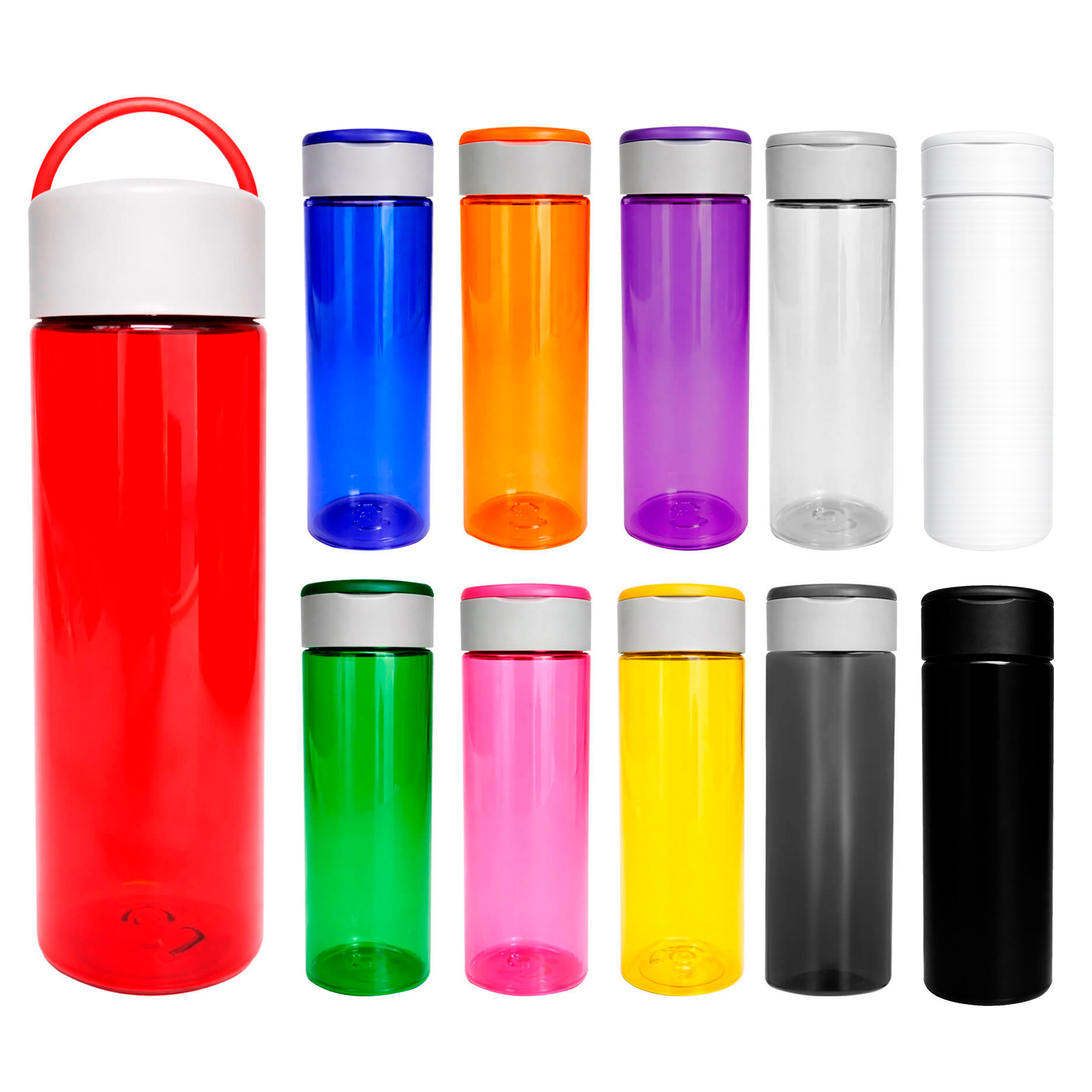 Cilindro de plástico traslúcido con tapa enroscable y asa que se incorpora a la tapa.